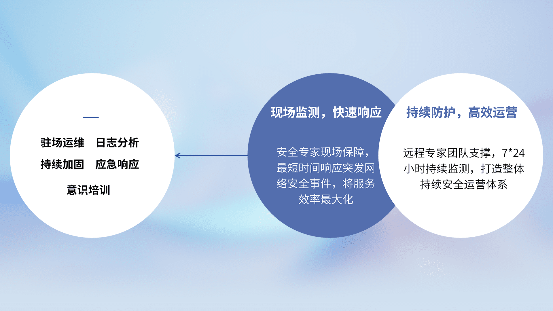 7X24小时持续监测安全事件,保持安全策略有效性,降低资产脆弱性风险,,,,精准拦截黑客攻击,,减少被黑客利用的机会,,第一时间遏制,,,,降低损失。。。。